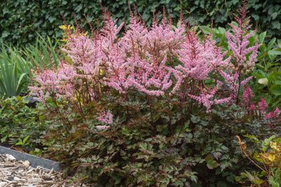 Lacy blue-green foliage topped by airy pink-lavender flower spikes
